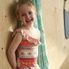 Explore tropical wonders with our Girls Ornate Tropicals Ruffle Trim Swimsuit. Guaranteed to make a splash at any pool party or beach day, your little one will love the flexible fit of the nylon and spandex blend and playful design.
