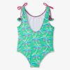 Embrace tropical elegance with our Girls Rainbow Palm Shoulder Bow Swimsuit. The nylon and spandex material will allow her to fully embrace aquatic activities, while the bold print is guaranteed to make a fashion statement on the beach.