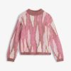 - Long sleeve sweater with birds eye jacquard knit motif